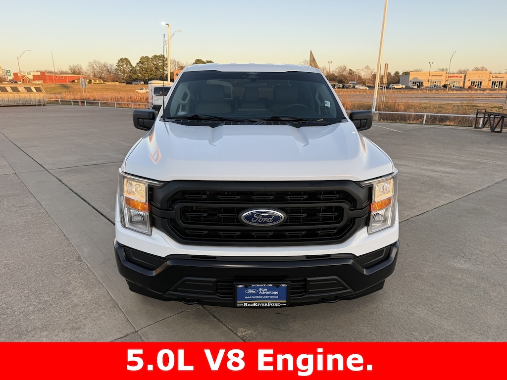 This is a 2022 F-150 SuperCrew 4x4 in White with a 5.0L V8 Engine. It has Vinyl seating, Power Locks/Windows, Cruise Control, Back-Up Sensors, Skid Plates and more. This is a perfect truck for work or please! Come see and drive this one today at Red River Ford in Durant! Don't forget to ask about Engines for Life!