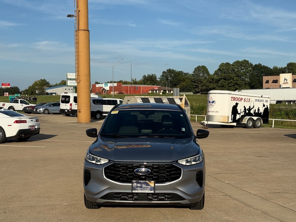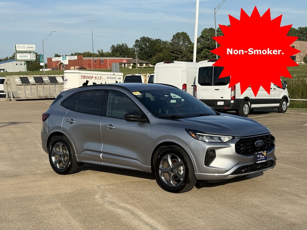 This is a 2024 Escape ST in Silver! It has Heated Cloth/Vinyl with Power Driver seat, Heated Steering Wheel, Ford Pass Connect, Satellite Radio, Rear Camera, Blind Spot Monitoring, Cold Weather Package, Remote Start, 18" Wheels, Power Liftgate and more. This is a fun to drive and great looking sporty SUV. Come drive it at Red River Ford in Durant! Don't forget to ask about Engines for Life!