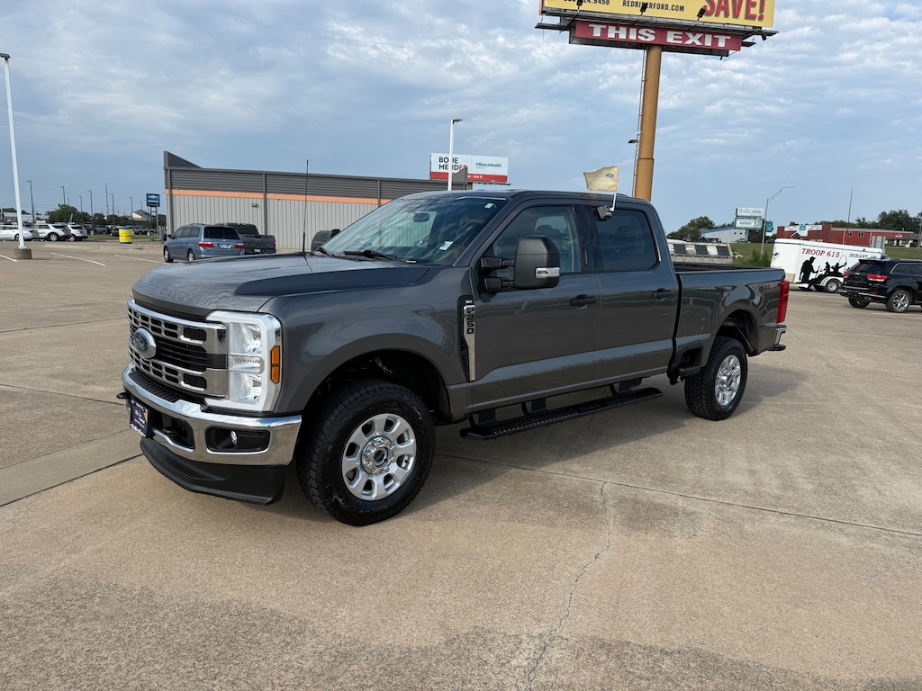 This is a 2024 F-250 Crew Cab XLT 4x4 in Gray! It has Cloth with Power Driver seat, Ford Pass Connect 5GWI-FI modem, Pre-Collision Assist, Rear Camera, Platform Running Boards, PowerScope Trailer Tow Mirror, Tough Bed Spray in Bedliner, 18" Wheels, 3 Brand New Tires and more. This is one sharp truck. Drive it today at Red River Ford in Durant! Don't forget to ask about Engines for Life!
