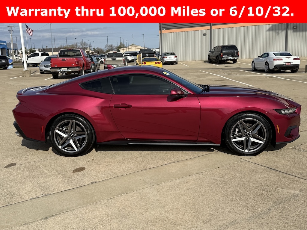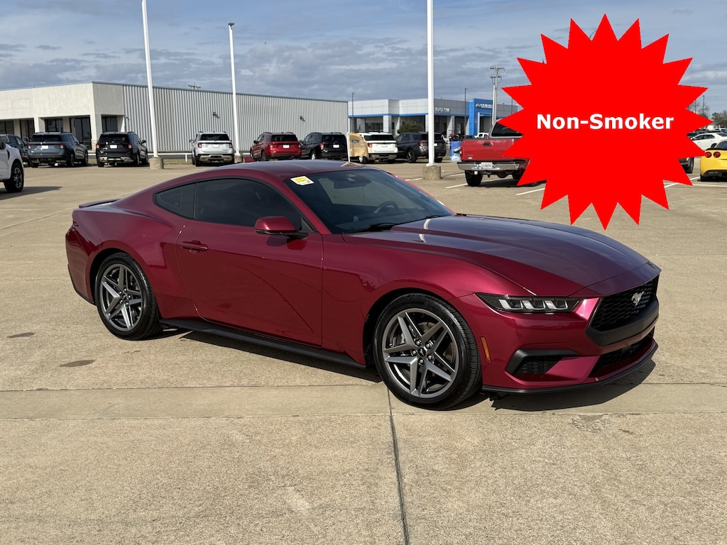 Our customer decided he needed a truck so traded this one in wow, check out the very low miles! This is a 2025 Mustang Coupe Premium in Red. It has Cooled/Heated Power Leather seating, Heated Steering Wheel, Connected Navigation, Ford Pass Connect 4G Modem, Satellite Radio, Rear Camera, Blind Spot Monitoring, Back-Up Sensors, Remote Start, Ford Co-Pilot 360, Premium Trim and Color Package with 3.15 Ratio Limited Slip Axle, 19" Wheels, Blade Spoiler, and much more. You need to come see and drive this Mustang at Red River Ford in Durant! Don't forget to ask about Engines for Life!