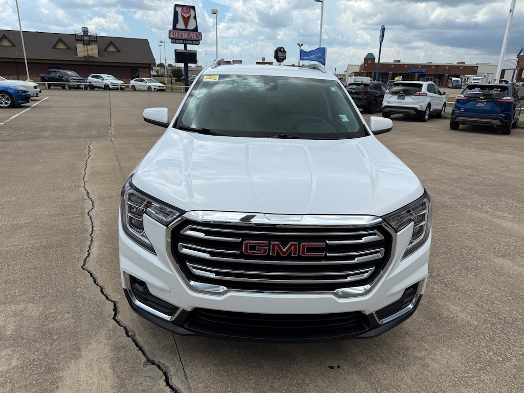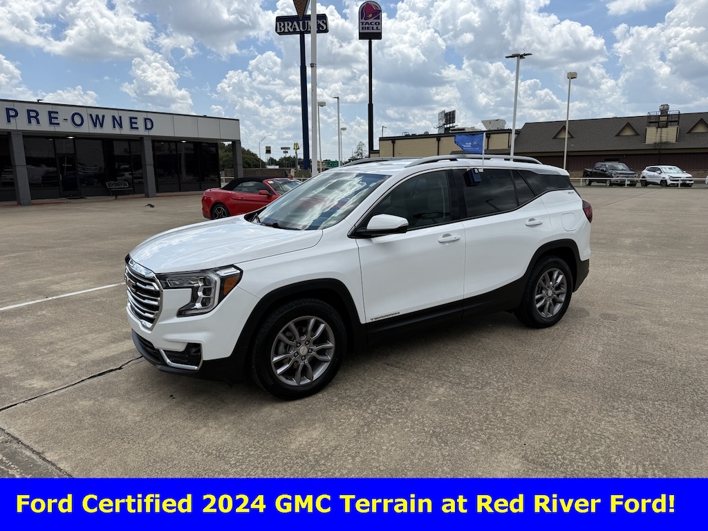 This is a 2024 GMC Terrain SLT in White! It has Power Heated Leather seating, Satellite Radio, On-Star, Rear Camera, Power Liftgate, Lane Keep and more. This is one good looking and driving vehicle. Come see for yourself at Red River Ford in Durant! Don't forget to ask about Engines for Life!