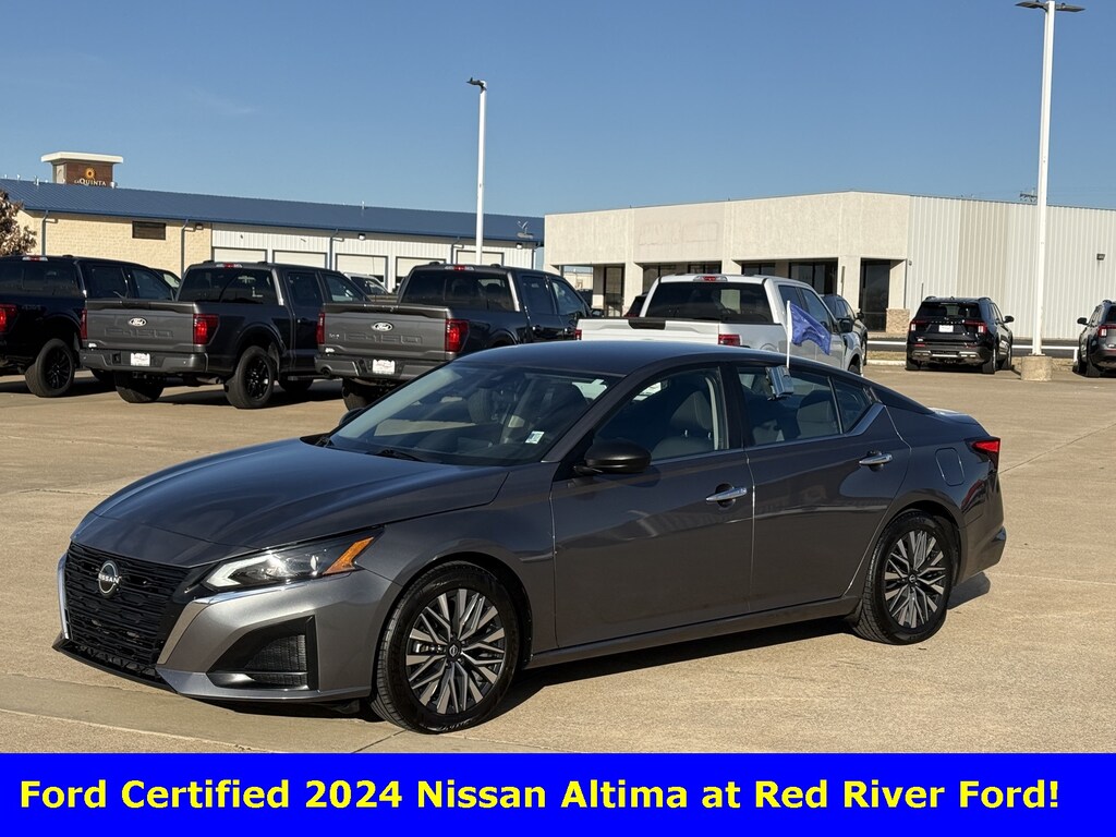 This is a 2024 Nissan Altima SV in Gray! It has Cloth with Power Driver seat, Satellite Radio, Rear Camera, Blind Spot Monitoring, Back-Up Sensors and much more. This is a fine looking and driving sedan at Red River Ford in Durant! Take it for a spin today! Don't forget to ask about Engines for Life!