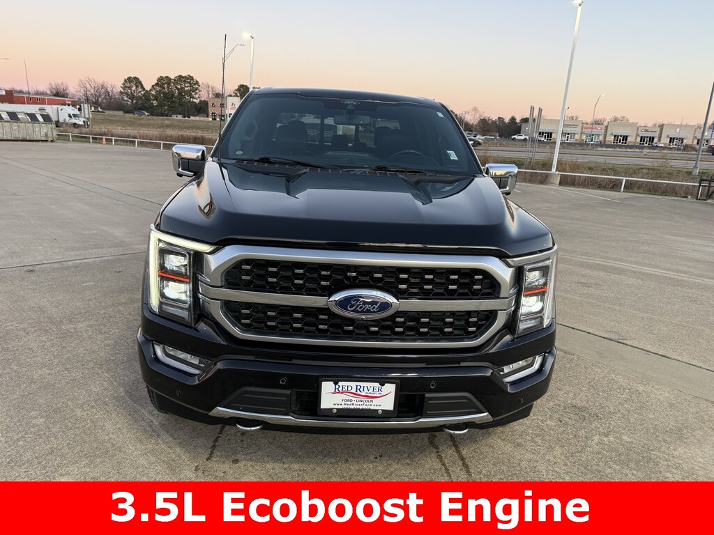 This is a 2022 F-150 Platinum 4x4 SuperCrew in Black! It has Cooled/Heated Power Leather seating, Heated Steering Wheel, Navigation, Satellite Radio, Ford Pass Connect 4G Modem, B&O Sound System, Ford Co-Pilot 360, Blind Spot Monitoring, Back-Up Sensors, Lane Keep, Post Collision Braking, Blind Spot Monitoring, Back-Up Sensors, BlueCruise, Adaptive Steering, Twin Panel Moonroof, Pro-Power OnBoard 7.2kW, Max Trailer Tow Package, FX4 Off-Road Package, 20" Wheels and much more. This truck looks great and has all the equipment. See for yourself at Red River Ford in Durant!
