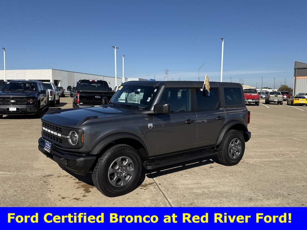 This is a 2025 Bronco Big Bend in Gray! It has Don't forget to ask about Engines for Life! It has Cloth seating, Navigation, Satellite Radio, Ford Pass Connect, Rear Camera, Pre-Collision Assist, Blind Spot Monitoring, Back-Up Sensors, TER MGMT with GOAT modes, Auto Transmission, Hard Top Molded in Color and much more. Take on the road or go off-road with this Bronco! Drive it today at Red River Ford in Durant! Don't forget to ask about Engines for Life!