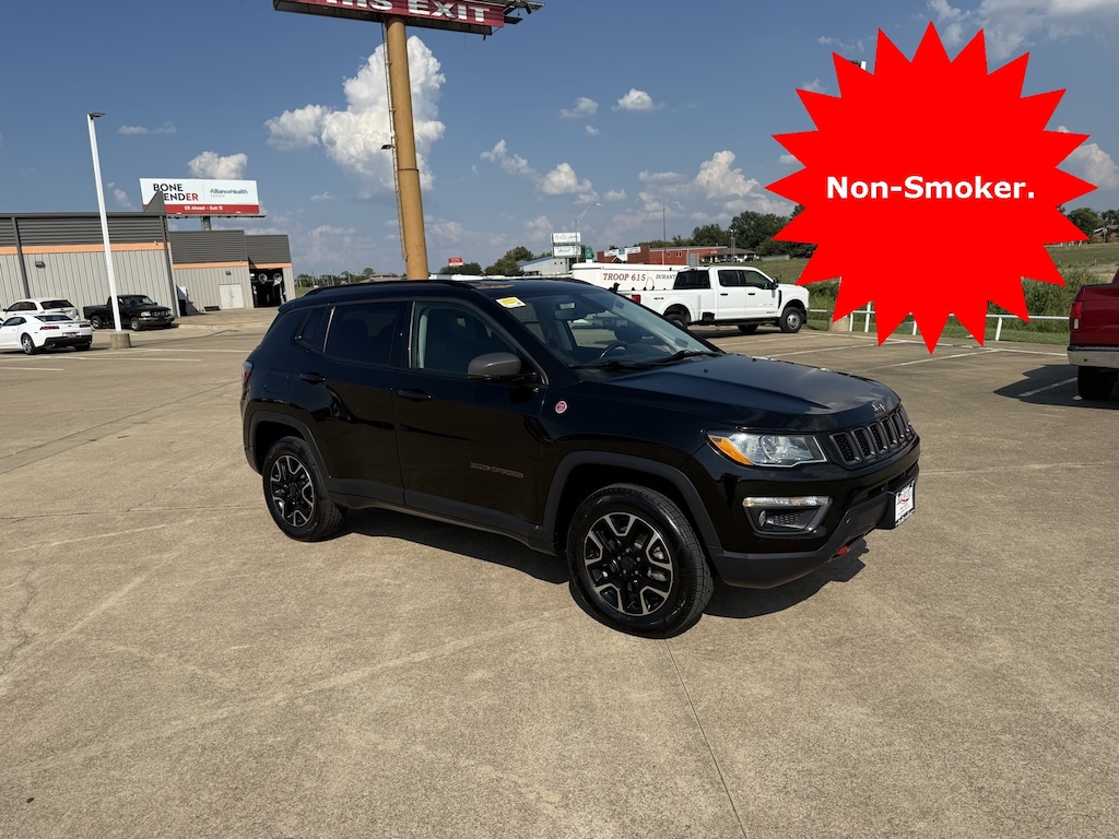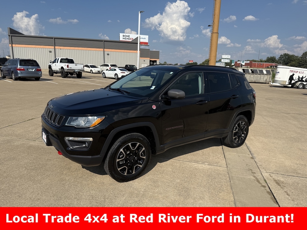 This is a 2020 Jeep Compass Trailhawk in Black! It has Vinyl Seating, Power Locks/Windows, Satellite Radio, Rear Camera, 4 Brand New Tires and more. This is a nice looking SUV and is a great value! See what we mean by taking it for a spin at Red River Ford in Durant! Don't forget to ask about Engines for Life!